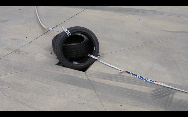Por una parte, fotografías en gran formato sobre espacios cuasi escenográficos, por otra, imágenes encontradas y apropiadas del sitio, como diapositivas en su estado de construcción, bocetos de grafiti y fotografías de paisajes vacacionales de algún ex empleado, a las cuales, la humedad dotó de una cualidad escultórica. La documentación de cristales rotos de los automóviles que aún se encontraban en el sitio, fotografías de objetos que funcionan entre ellos como equivalencias de elementos ornamentales, cascajo y vegetación. Y por último, una pieza de video, que da cuenta de la tipología de cascarones de automóviles, donde el sonido de la carretera cercana decrece mientras cruzo la consesionaria.